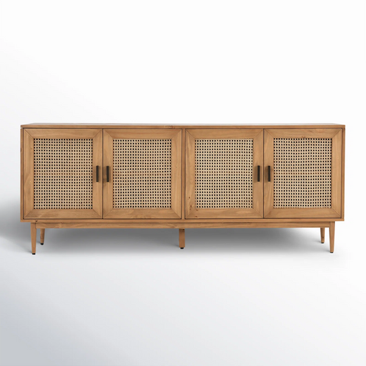 Natural Brown Genie Solid Wood 4 - Door Sideboard