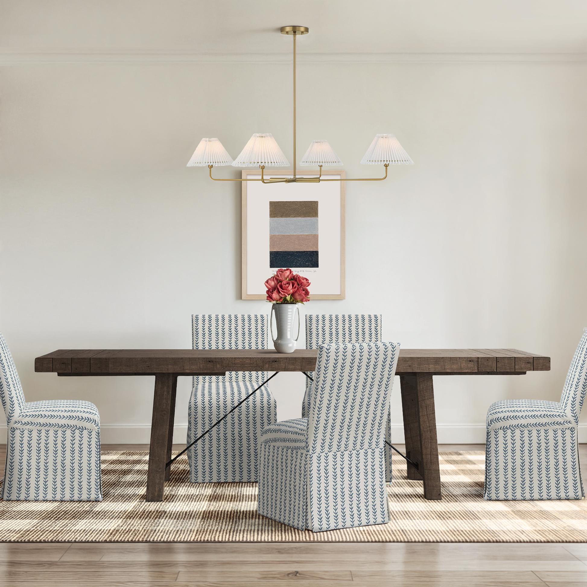 There's no doubt about it: A dining table is the center for family gatherings and celebrations. This one is made from solid and reclaimed pine wood with a distressed finish. Variations, knots, and natural graining on the surfaces add a subtle dose of farmhouse character. Plus, diagonal metal turnbuckle accents provide extra support. It accommodates six people – eight with the included leaves in place.